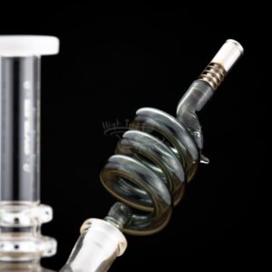 Twist up your Dynavap session with this glass RattleSnake stem which features a small airport, 10mm and 14mm connection. It offers a simple yet smooth experience when paired with a dynavap tip. and your favourite 10mm or 14mm bubbler.