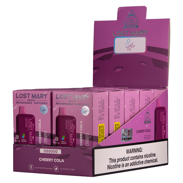 The Lost Mary OS5000 Cherry Cola stands out from the crowd due to its combination of superior battery life, impressive puff count, exceptional flavor delivery thanks to the mesh coil, and a delightful cherry cola flavor profile that leaves other disposables in the dust. It’s the perfect blend of convenience and satisfying performance.