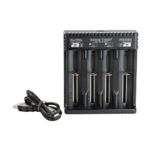 The Hohm Tech School 4-Channel Battery Charger is compact and durable, constructed from high-quality materials for long-lasting performance. Dimensions are [Insert Dimensions Here]. Always handle batteries with care and follow manufacturer’s instructions for safe handling and disposal. Never leave charging batteries unattended.