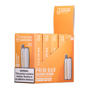 Introducing the Mango Bomb Prime Bar 8000 – the groundbreaking disposable vape that delivers an unparalleled vaping experience from first puff to last.