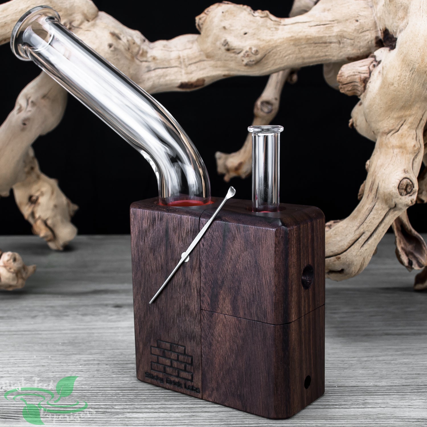 The OG Brick is constructed out of natural hardwood of various types. The OG Brick’s body is made out of 3 separate wood block. These blocks are held together by very strong magnets. And there is also a magnet on the side of the OG that can conveniently hold a stir tool.