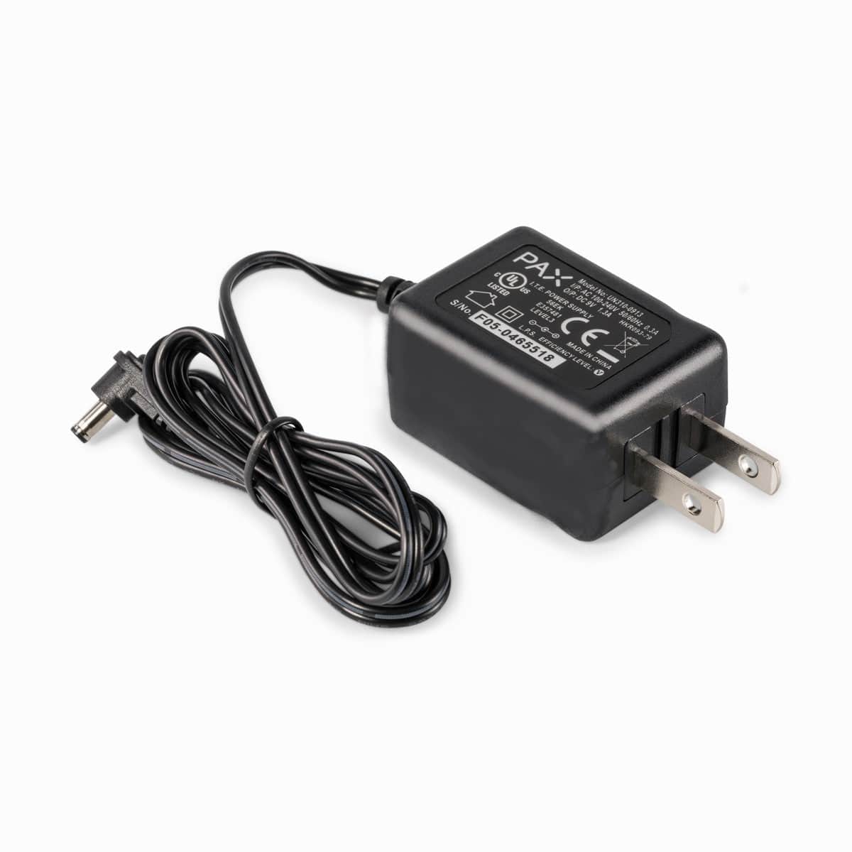 The PAX 2/3 AC Adaptor is constructed from durable, high-quality materials. Specific dimensions will be provided on the product packaging.