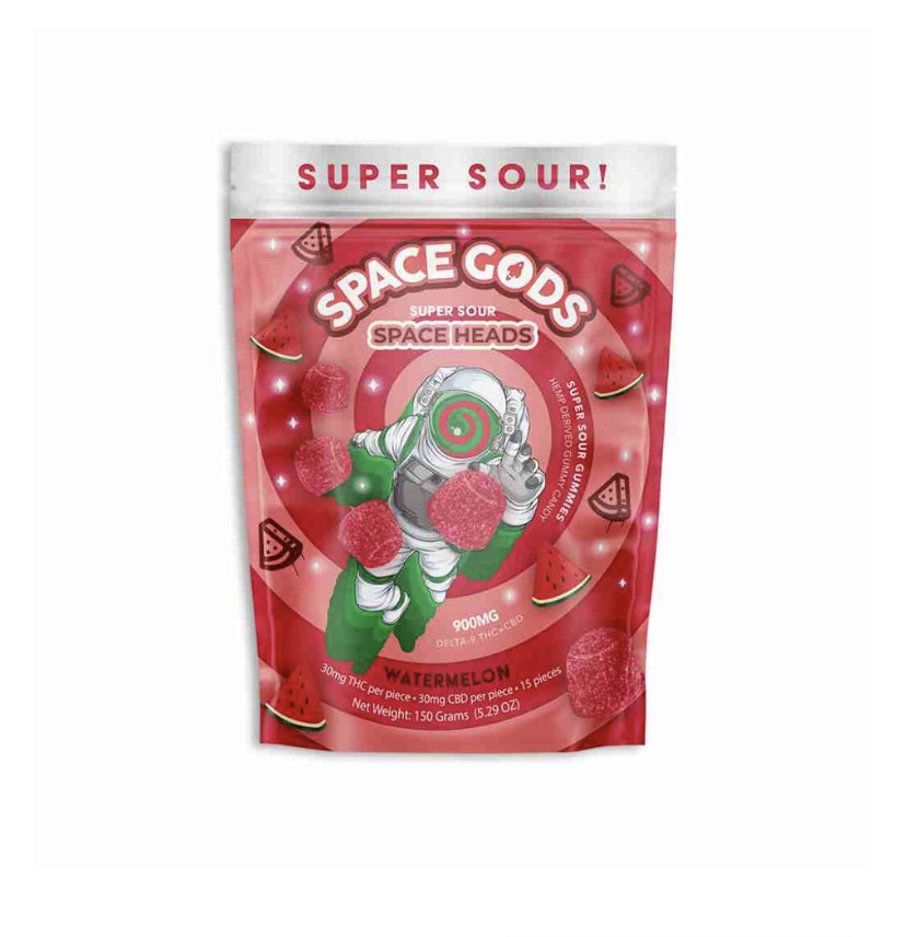 Discover the Space Gods Super Sour Space Head Gummies, offering 30mg of delta 9 THC in each gummy, for a total of 15 gummies. Please view photo for the full ingredient list. Contains 3x more than regular Space Gods gummies and 3x the weight.
