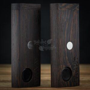 The XL Wenge DynaStash ER is a must have for any 109mm vapcap owner. Wenge is a dark and moody wood and has a very unique grain structure that often has very smooth dark glossy grain mixed in with lighter shades that are more matt in appearance. XL dynastashes are capable of carrying one 109mm vapcap, a finger size amount of your favourite herb and there is also room for a stoking tool. Perfect for out and about users but also provides a safe home for your vapcap in any situation.